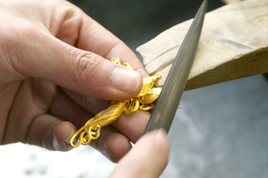 使用銼刀挫掉黃金產品上的披鋒及毛刺