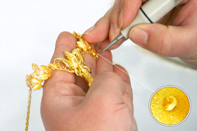 這樣一件黃金產品的基本形體就完成了,下一步開始對黃金產品的細節部分進行精心的刻畫,稱之為表面處理。