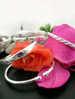 白銀首飾主要有成人和兒童手鐲兩大系列。工藝主要有壓制、車花、手工時尚鐲三大系列。 壓制類產品花型達2000多種,車花類花色達1000多種。